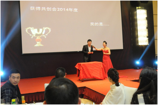 上午9點半,盛典拉開序幕,共創(chuàng)會秘書長郝媛圓擔任本期的主持人,以150(共創(chuàng)會截止目前會員人數(shù))、88(共創(chuàng)會14年活動次數(shù))、2(共創(chuàng)項目門店數(shù)目)三個共創(chuàng)會14年具有代表的核心數(shù)字, 很好的對共創(chuàng)會的2014做了簡單全面的總結(jié)回顧,同時對盛典流程安排作了清晰講解與介紹。