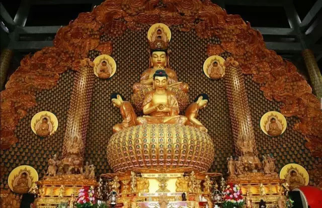 下午參觀萬佛寶殿,聽師兄講解每尊佛的故事。萬佛寶殿宏偉壯觀,莊嚴(yán)靜肅。學(xué)員們只默默止語瞻仰,內(nèi)心驚嘆萬分。