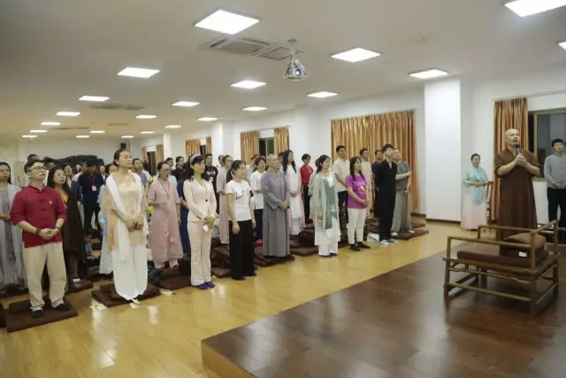 共聚禪堂,交流心得,暢言修行體會?;壑袔煾搁_示,大眾呈上人生的疑問與痛苦,師父指點迷津,末后鼓勵大眾發(fā)菩提心,“正心正念,日行十善!”