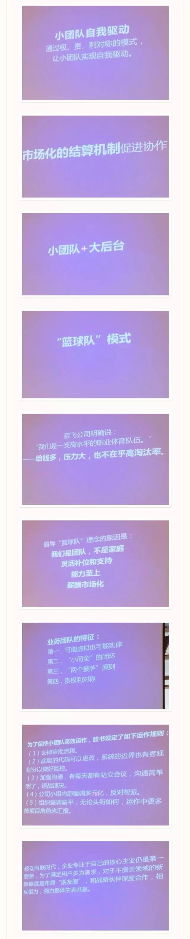 第二是組織構(gòu)架,組織構(gòu)架不是掛上各個(gè)部門的名稱,重要的是前臺(tái)、中臺(tái)和后臺(tái)。公司如果想做成內(nèi)部的創(chuàng)業(yè)平臺(tái)型公司,很重要的一點(diǎn)是你是否有足夠好的后臺(tái)支撐、人事財(cái)務(wù)支撐、組織支撐、企業(yè)文化支撐、互聯(lián)網(wǎng)技術(shù)支撐。