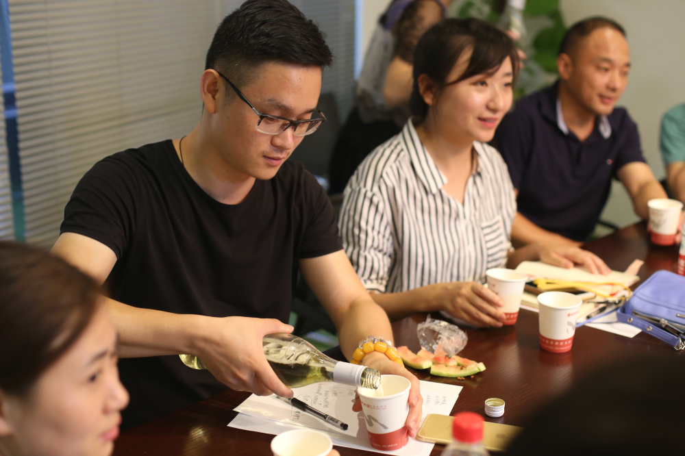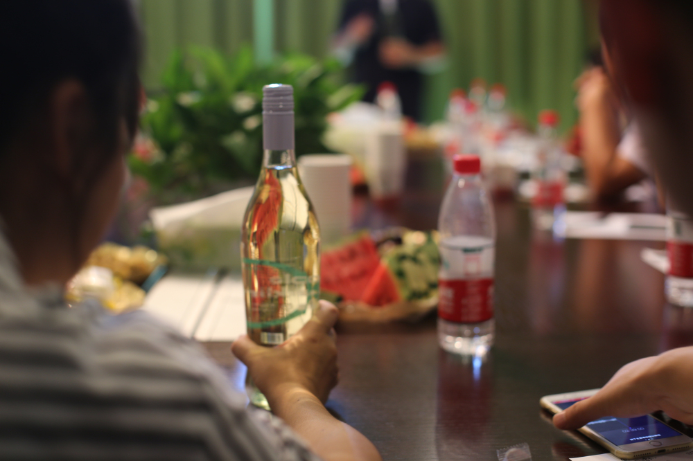 會議過程中,鄭總把他的產品拿到現(xiàn)場與共軍們分享,現(xiàn)場儼然成了一個“品酒會”。