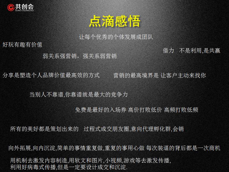 哇哦~全場充斥著干貨的氣息,共軍們認真做著筆記,不得不說這次私董會,蒞臨現(xiàn)場的十幾位老板受益匪淺,相信運用到自己的企業(yè)中也一定能出現(xiàn)第二個,第三個、第四個“45度”……共軍共同進步,不怕從0開始,就怕從未啟程。一起我們才能改變世界多一點!