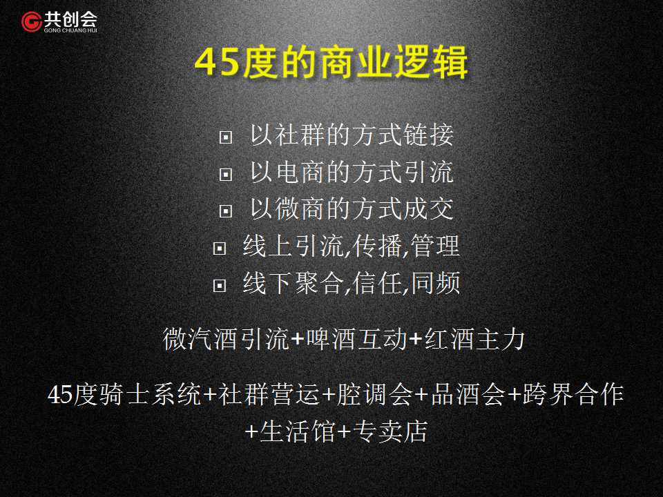 15年傳統(tǒng)電腦批發(fā)生意成功轉型社交電商的二次創(chuàng)業(yè),在共創(chuàng)會的平臺上,他學習中實踐,實踐中成長,見證了45度冰從500萬到2.6億的過程,短短兩年的時間里,他通過社群營銷思維,開啟了W2W(wide to wide)的探索,1萬個微信號的自媒體營運,用5000萬粉絲為紐帶,成為了一個超級鏈接者!(大拇指!)