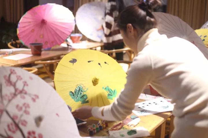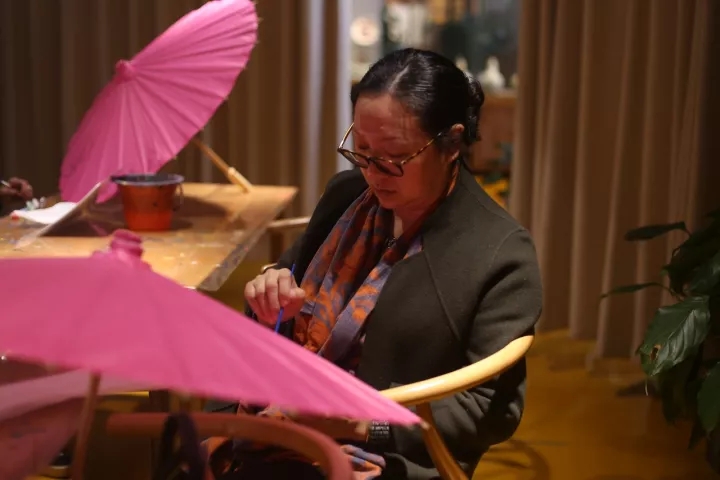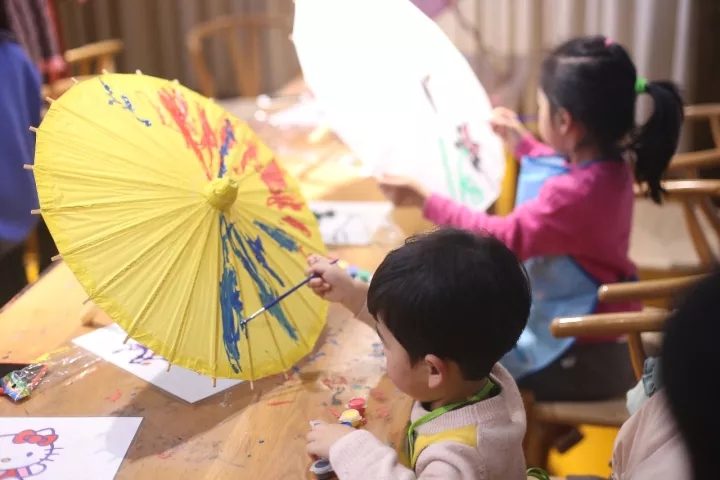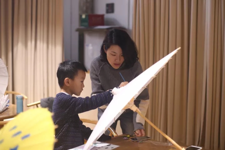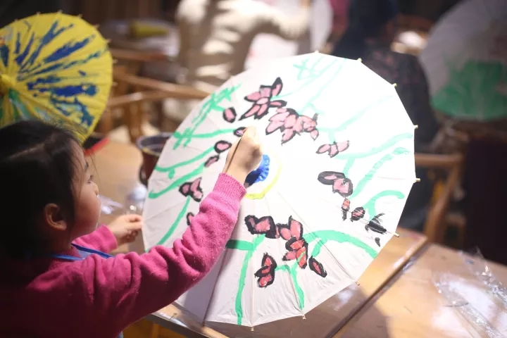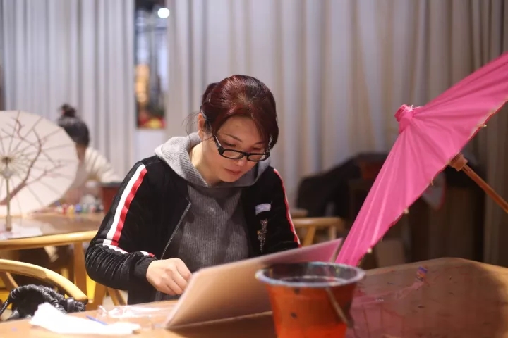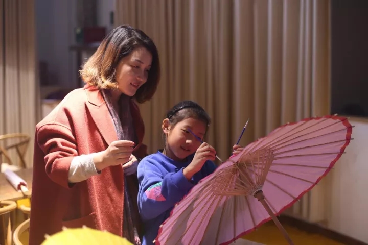 女企業(yè)家們和寶寶都用五顏六色的顏色裝點著一把把油紙傘,拿起畫筆,一展才藝,描繪精美的畫面,仿佛又同孩子一般回到了色彩斑斕的童年。