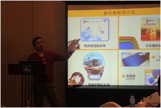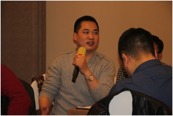 (上圖為杭州聚奎電子科技有限公司張峰張總正在精彩地與大家分享會說話的墊子的項目,對于此項目的啟動、資金、盈利模式、投入產(chǎn)出比等做了詳細的講解)