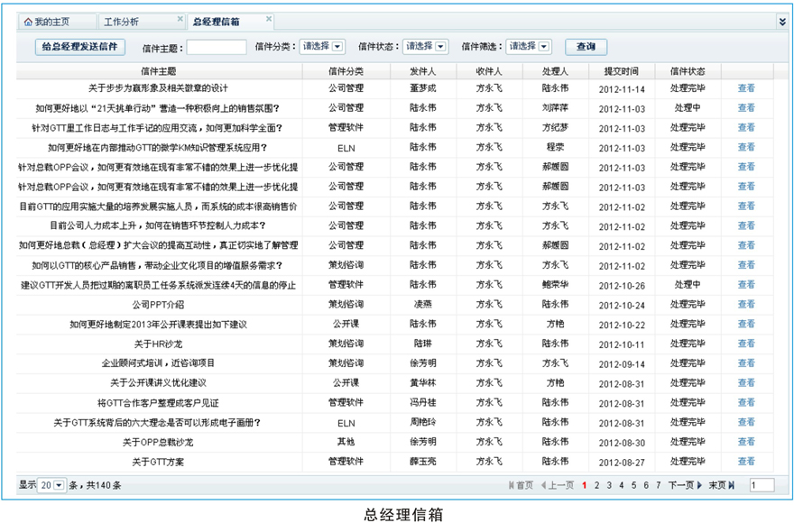GTT員工關(guān)懷系統(tǒng)目的在于從細(xì)微入手、讓員工說出心聲,以溫馨凝聚員工,從而培養(yǎng)員工對(duì)企業(yè)的認(rèn)同感和歸宿感,激發(fā)其敬業(yè)意愿,提高公司員工的敬業(yè)度。主要功能通過總經(jīng)理信箱、學(xué)習(xí)成長(zhǎng)、生日提醒、入職紀(jì)念、每日一句、工作助手、員工互助、寶寶秀、實(shí)踐社團(tuán)等讓員工感受家的溫暖;從而提高員工幸福指數(shù),增加企業(yè)文化內(nèi)涵!